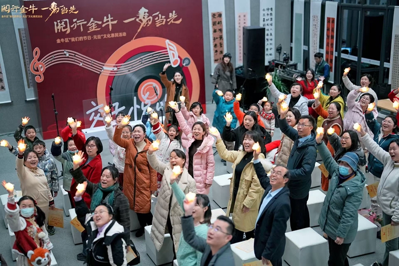 2026年1月1日,“交子悦唱”合唱音乐会在金牛区图书馆中庭阅读区启幕。活动邀请专业声乐导师,围绕呼吸发声、和声技巧等内容,为80余名音乐爱好者提供专业指导,参与者共同合唱《小美满》等歌曲。活动同步录制了专属MV,参与者成为“交子悦唱”品牌成员。