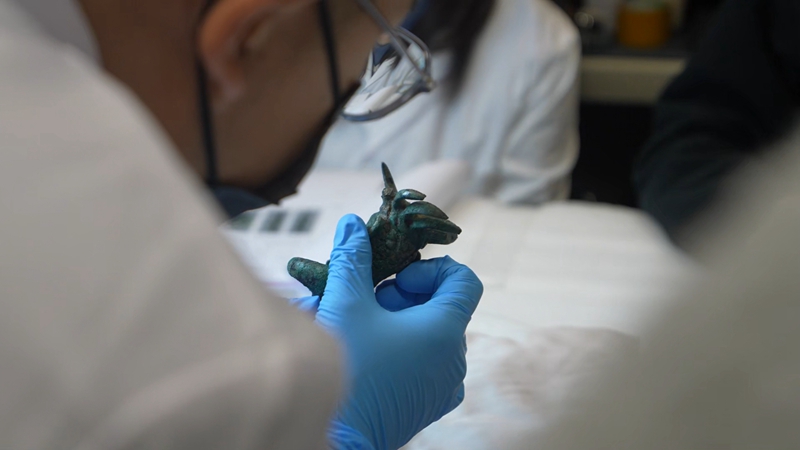 对文物进行包装。(成都金沙遗址博物馆 供图)