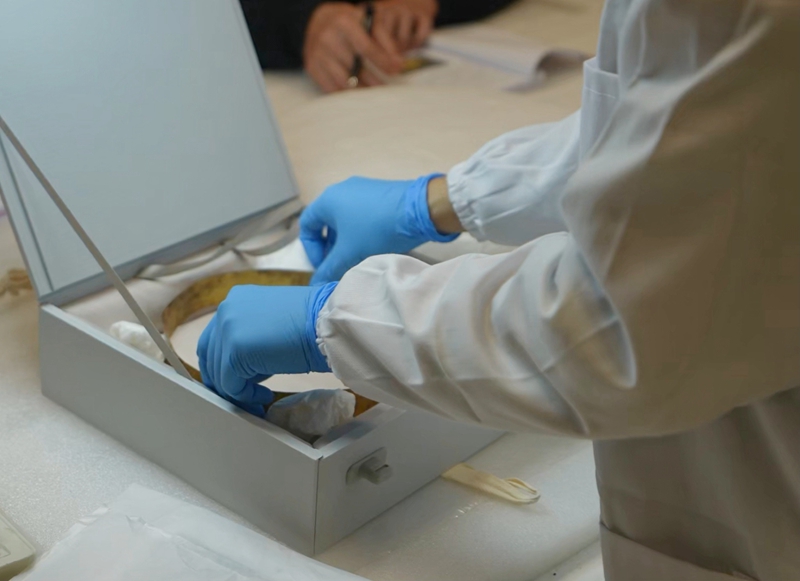 文物外展绝非“说走就走的旅行”,而是一场需要全流程、全方位保障的严谨征程,需严格遵循《中华人民共和国文物保护法》《博物馆藏品管理办法》等法律法规的相关规定。首先在“出差”前,博物馆要对文物状态进行全面体检和评估,然后严格按照规定完成文物借展报批手续,获得合法“出差许可”;同时,与中国国家博物馆签订详细的借展协议,明确规定了太阳神鸟金饰等借展文物的展出时间、保护标准等关键事项。