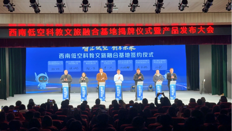 西南低空科教文旅融合基地揭牌仪式暨产品发布大会。(眉山市委宣传部 供图)