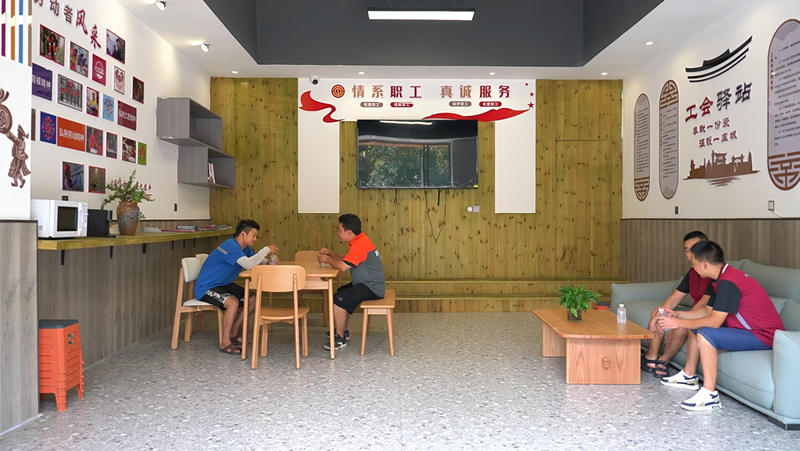快递小哥在北川“工会驿站”休息。(北川县委宣传部 供图)