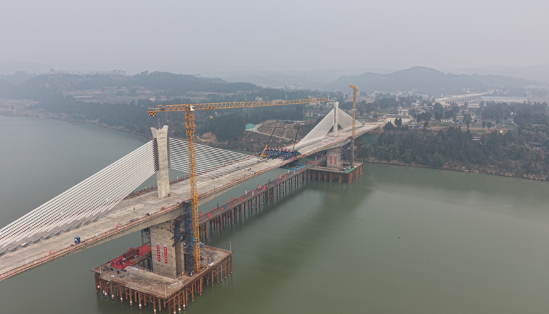 阆营高速嘉陵江特大桥全长1379米,主桥长490米,横跨嘉陵江,采用大跨径“斜拉现浇”箱梁结构。此次合龙对精度要求高,轴线偏差须小于10毫米,高差控制在15毫米以内。此次合龙的240米主跨是全线技术难度最高、施工风险最大的关键节点。