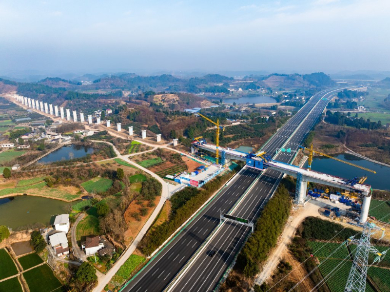 15个续建铁路项目中,则包括多条出川大通道,东向、北向、西北向、南向的高铁大通道将次第打通,深刻重塑四川的开放格局。前不久,成渝中线高铁控制性工程——蜀安隧道“蜀安号”盾构段顺利贯通,预计2027年通车,今后从成都到重庆最快只需50分钟;成都直达中原和京津冀地区的便捷客运通道——成达万高铁即将全线铺轨,同样冲刺2027年通车目标。此外,建设中的西宁至成都铁路连接四川、甘肃和青海,全线通车后,从成都到西宁5小时内可达;渝昆高铁四川宜宾至云南盐津南段建设也在稳步推进,全线通车后从成都至昆明仅需3小时左右。
