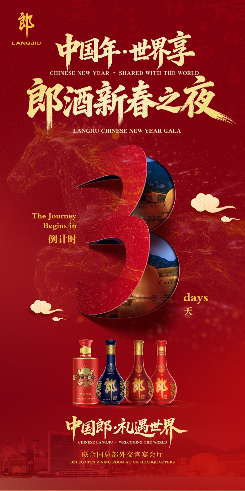 “中国年·世界享”郎酒新春之夜将于当地时间2月5日晚在联合国总部外交官餐厅举行,届时郎酒将为现场嘉宾讲述“用一座庄园,酿一瓶好酒”的世界级酒庄故事,并以一部别具匠心的红花郎马年贺岁微电影《时辰里的中国红》向世界呈现中国年的深厚文化内涵与温情叙事。