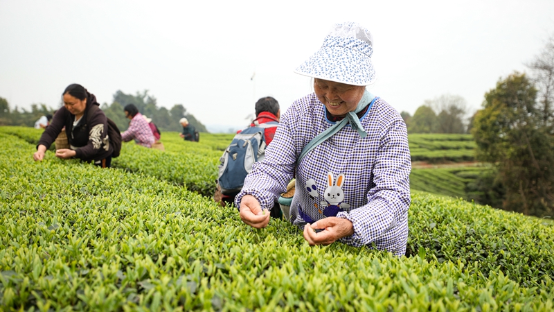 茶农正在采茶。(翠屏区融媒体中心 供图)