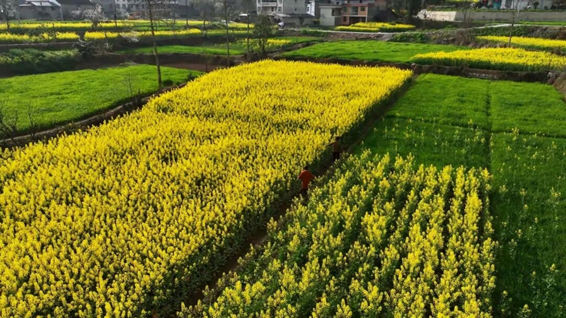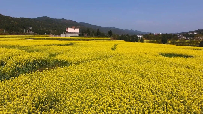 三月,四川省广元市苍溪县38.2万亩油菜迎来盛花期,连片的油菜花海铺成金色海洋,与错落有致的乡村民居、蜿蜒曲折的田间步道交相辉映。