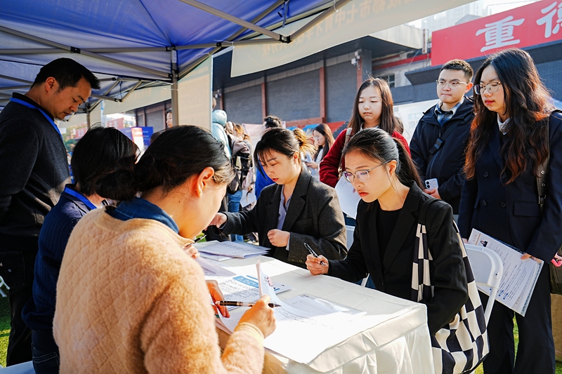 此次招聘会以校地共建推动两地就业资源深度融合,充分发挥高校人才培育与地方就业保障优势,为高校毕业生搭建了从校园到职场的“直通车”。通过前期调研摸清企业用工缺口和职工就业需求,实现双向精准匹配,帮助转岗待岗职工拓宽就业渠道、解决“急难愁盼”。活动紧扣引智助企,以人才链赋能创新链、托举产业链,为新质生产力发展筑牢人才支撑,彰显“校地一盘棋”合作优势、“成渝一家亲”协同效应。