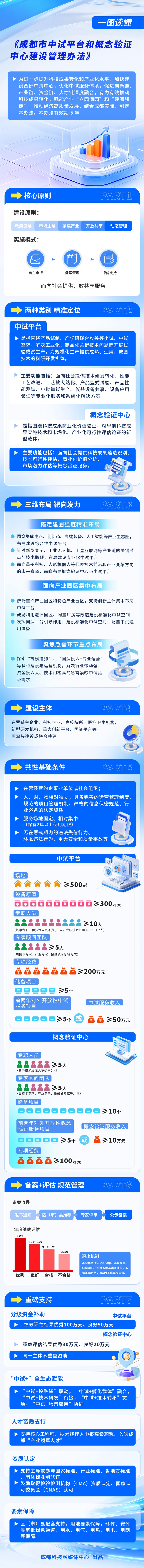 同时,《办法》鼓励在蓉链主企业、高校院所、新型研发机构、国资平台等牵头或联合共建,根据全市重点产业发展需求,采取牵头建设或联合共建的方式,建设面向社会开放共享的中试平台、概念验证中心。