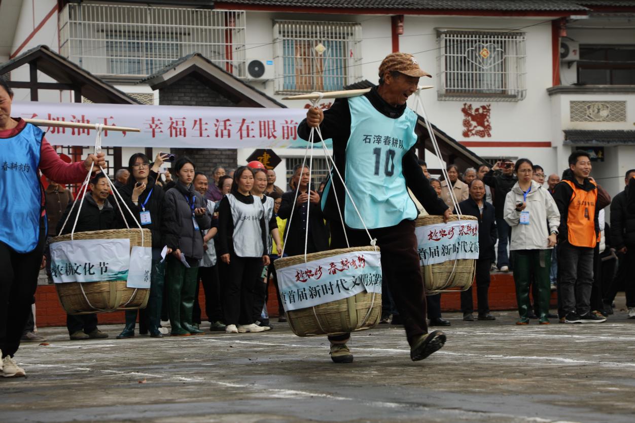 3月30日上午,四川省广安市邻水县石滓镇大河坝村人声鼎沸,“趁农时·春耕有约”石滓镇首届农耕文化节开幕。来自重庆市垫江县太平镇、澄溪街道等6个乡镇(街道)等地共12支代表队、120余名队员齐聚田间地头,以赛为媒、以农会友,在欢声笑语中开启了一场“土味”十足的农耕大联欢。
