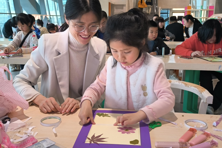 在成都市美术馆,以春日草木为原料,通过敲、染、拓的方式,做一张植物拓染书签;到成都市文化馆亲手编织的竹编夜灯。
