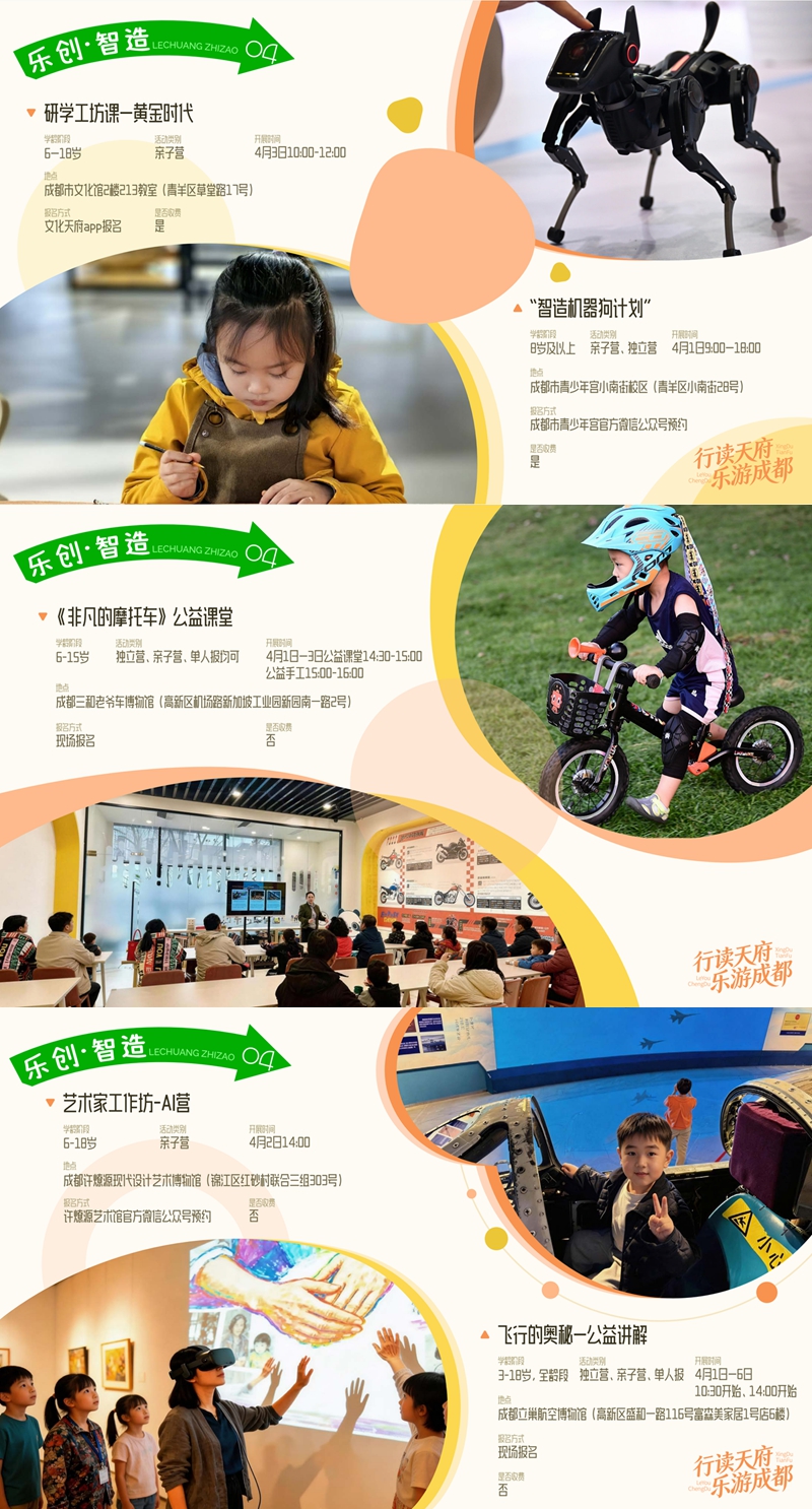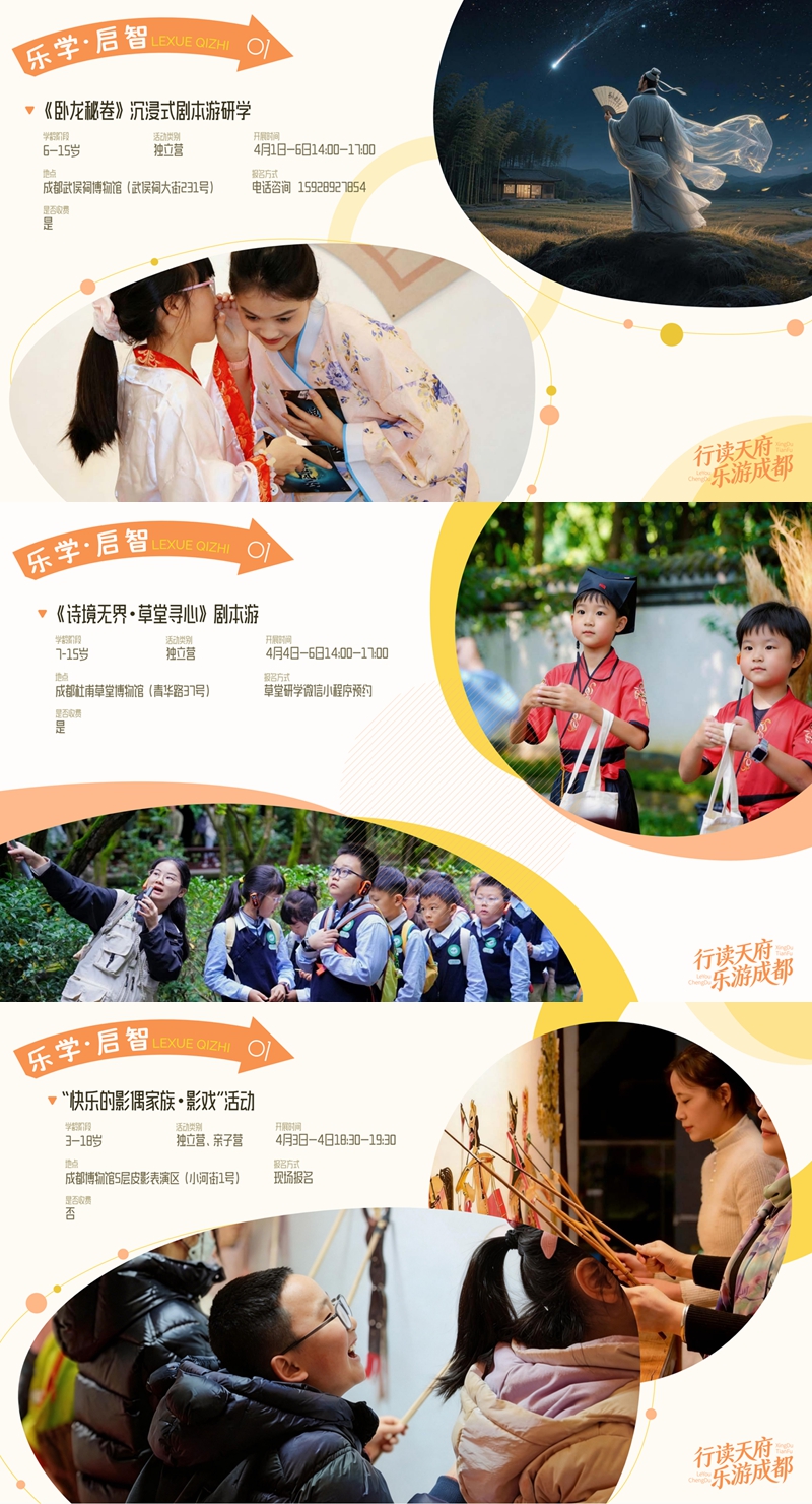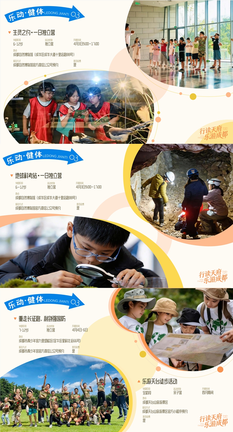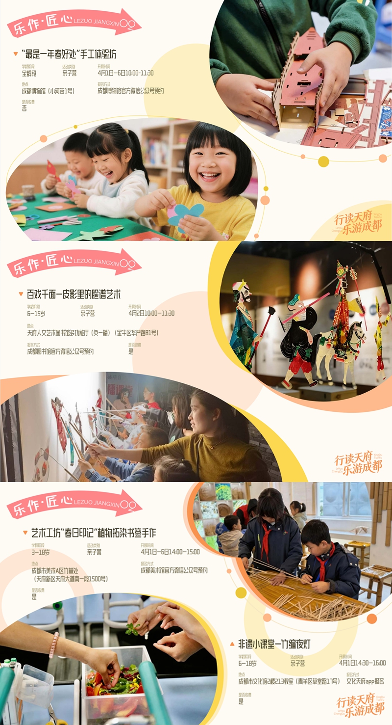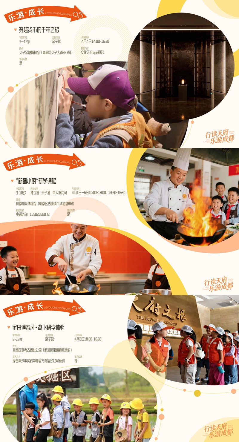 春假期间,成都市文广旅局正式推出“行读天府·乐游成都”主题研学之旅,五大板块特色活动同步上线,为广大市民带来全方位、多场景的春日游玩体验。