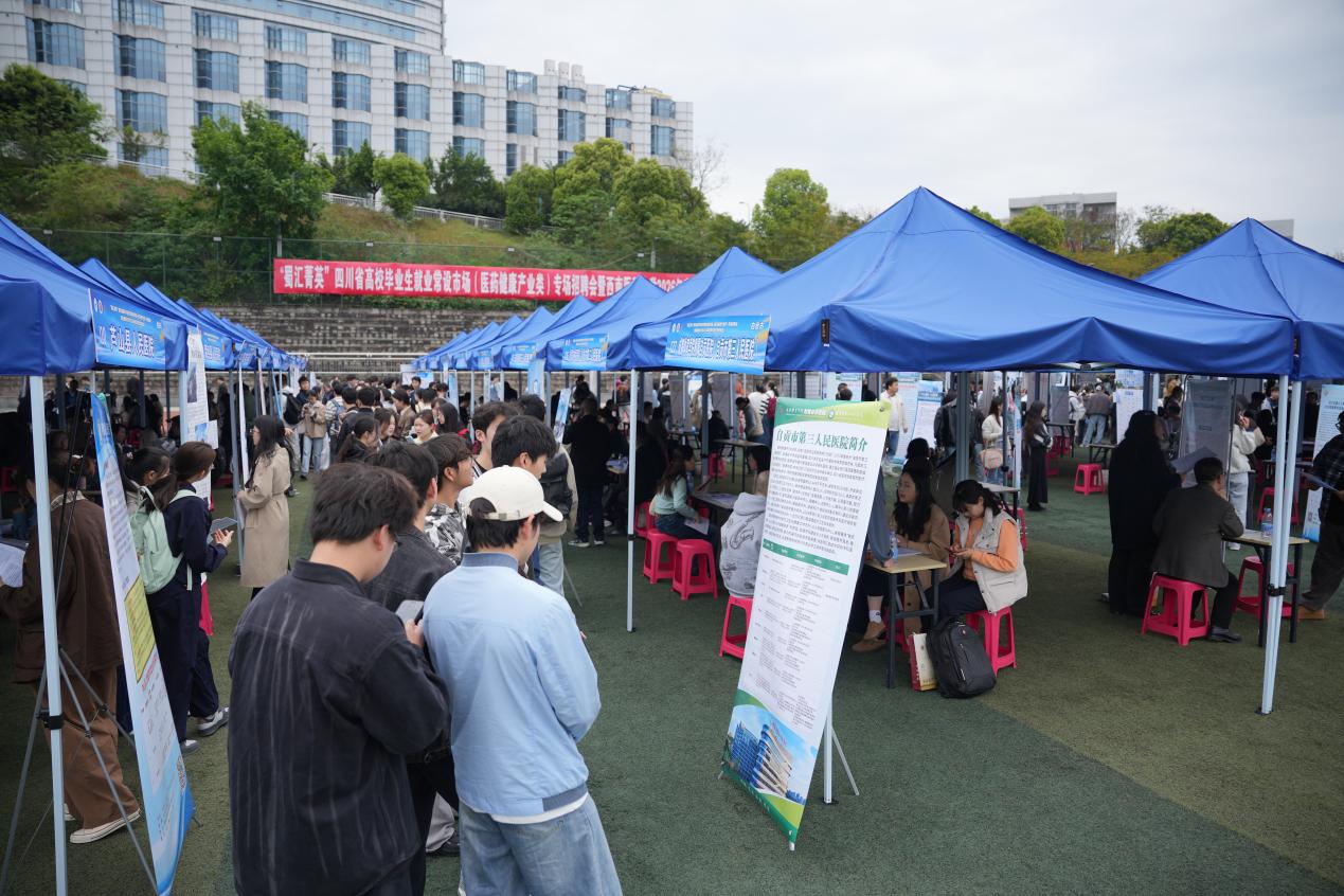 4月1日,“蜀汇菁英”四川省高校毕业生就业常设市场医药健康产业类专场招聘会暨西南医科大学2026年春季校园大型双选会在西南医科大学城北校区正式启动。来自全国各地近400家用人单位来到现场“摆摊设点”,带来了涵盖临床医学、护理、药学等领域的近万个岗位。
