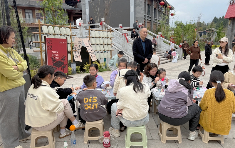 脸谱绘制区里,大人小孩围坐一堂,执笔描线、上色填彩,一个个鲜活的川剧脸谱跃然纸上。不少家长带着孩子专程前来,让孩子近距离接触非遗,感受传统戏曲的魅力。