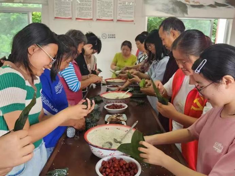 端午节期间,盛池镇志愿服务队组织独居老人和留守儿童齐聚一堂,共同包粽子。(乐至县委宣传部 供图)