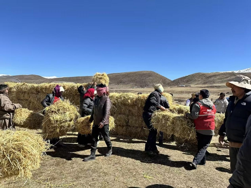 项目团队向牧民免费发放饲料。(中国人民财产保险股份有限公司四川省分公司 供图)