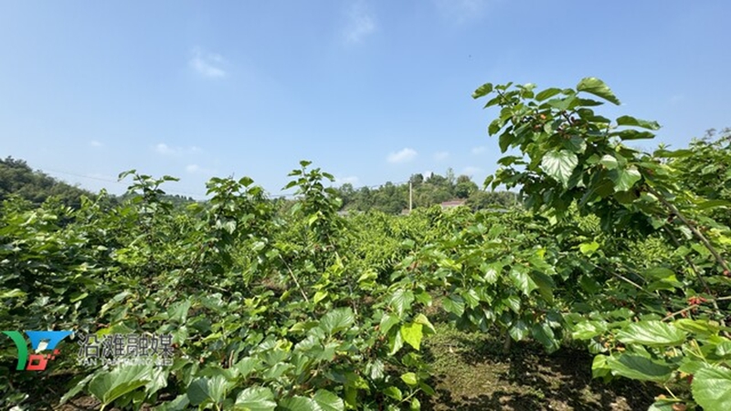 在四川省自贡市沿滩区黄市镇龙达家庭农场,300余亩现代农业基地郁郁葱葱,紫红交织的桑葚挂满枝头。