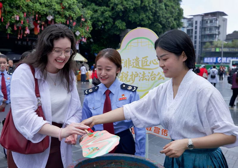 4月15日,国家税务总局成都市青羊区税务局、金牛区税务局联合在成都市宽窄巷子开展主题为“共守非遗匠心,税护法治公平”的第35个全国税收宣传月活动。活动特别邀请国家级非物质文化遗产成都漆艺代表性传承人陈红助阵,现场展示漆器制作技艺。非遗手作互动体验区人气高涨,市民游客踊跃参与税收知识趣味问答,答对问题便可现场体验古法香囊、植物拓印、漆扇制作等传统手作项目。活动现场同步设立税费政策咨询点,有人现场请教个税APP操作,有人咨询小微企业税收优惠政策,税务干部逐一解答,将合规纳税的法治理念送到群众身边。