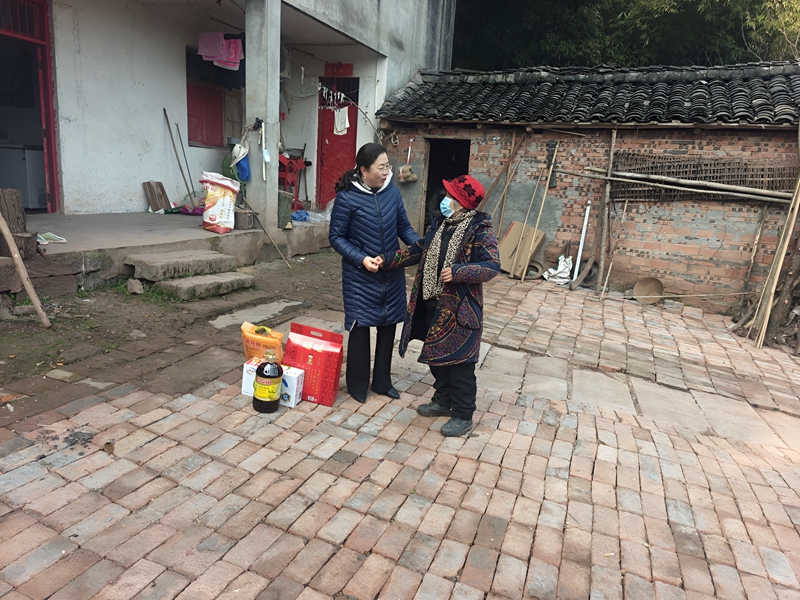 良安镇工作人员上门走访慰问老人。(乐至县委宣传部 供图)