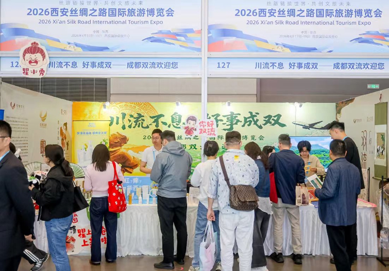 4月17日,2026西安丝绸之路国际旅游博览会拉开帷幕。成都双流区携15家优秀文旅企业组团参展,将蜀锦纹样与现代设计巧妙融合,并以“丝路起点·空港双流”为主题布置展位,在千年古都讲述传统与现代交织的巴蜀故事。