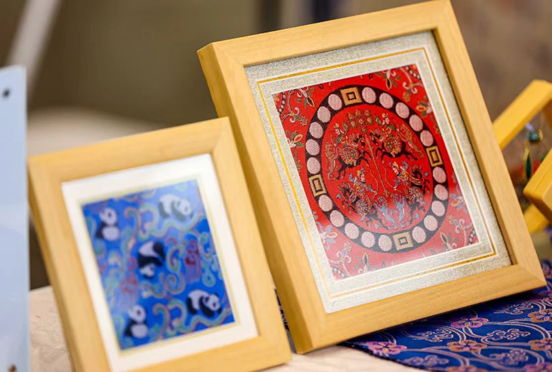 双流展位现场展示的蜀锦文创产品。
