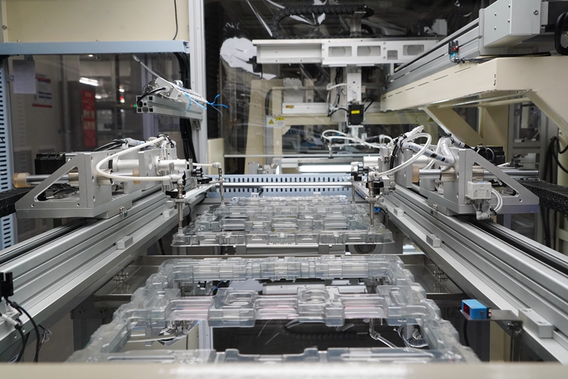 在成都高新区京东方成都车载显示基地拍摄的显示屏自动化生产线(资料图)。新华社记者 唐文豪 摄