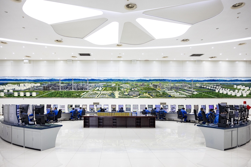 参观的首站是化工中央控制室。电子屏幕上,流量、温度、压力等工艺数据正不停刷新,犹如现代工业浑厚的脉搏。“中控室就相当于我们人体的大脑,全厂所有设备的运行都由这里集中控制。”化工一部员工马子涵向参观者解释,“操作台前的操作人员,就像一个个魔法师,通过先进的数字化技术,在电脑前控制着现场成千上万的仪表与设备。”