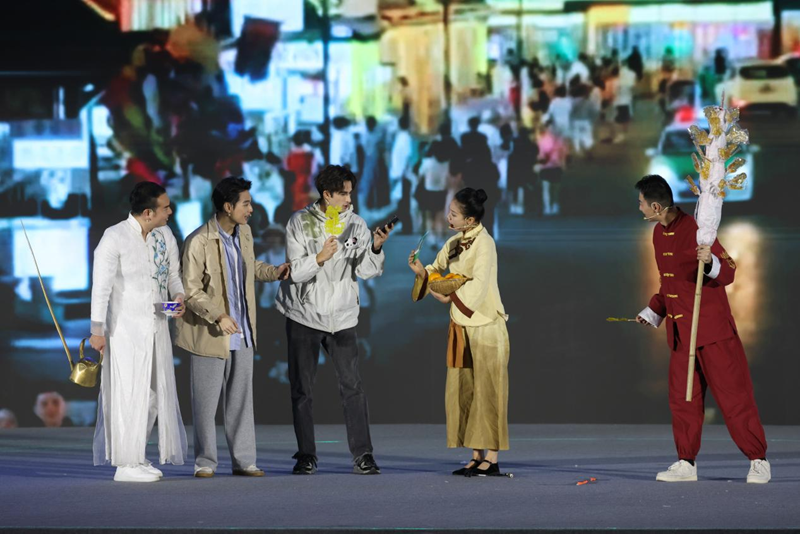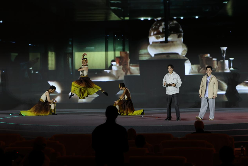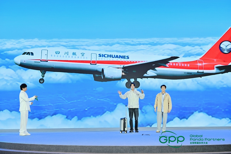 11月21日,在2025全球熊猫伙伴大会主论坛上的“锦绣天府·安逸四川”推介环节,情景演绎配上《哪吒》系列电影角色“太乙真人”的配音演员张珈铭富有四川特色的语音导览,带领观众领略“锦绣天府·安逸四川”的魅力。