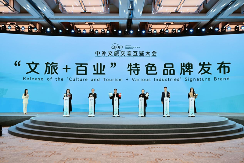 11月22日上午,2025全球熊猫伙伴大会平行会议“中外文旅交流互鉴大会”在成都空港国际会议中心举行。大会现场,成都市青羊区携成都蜀锦织绣博物馆织就的锦衣霓裳系列新中式马甲和框画蜀锦亮相。