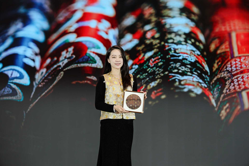 登台嘉宾身着锦衣霓裳系列新中式马甲,以传统龟背如意纹为基底,融合象征吉祥的柿子纹样进行创新绘制,既延续传统精髓,又彰显现代审美。
