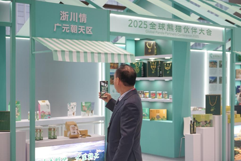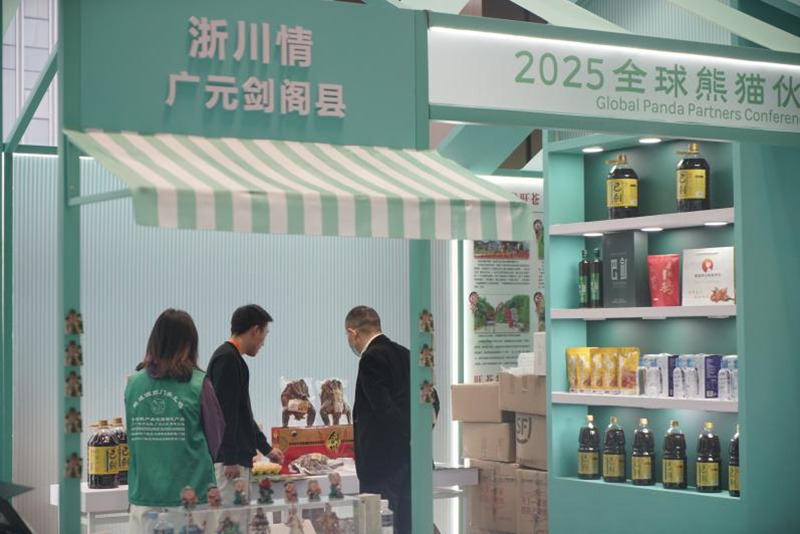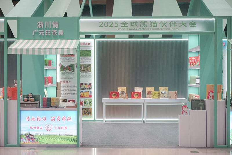 11月21日,2025全球熊猫伙伴大会在成都开幕。在大会配套活动“熊猫文创集市”上,杭州市帮扶广元市工作队携手广元市昭化区、朝天区、旺苍县、青川县、剑阁县、苍溪县设置“浙川情”展区,将来自6个区县的特色产品带到现场。