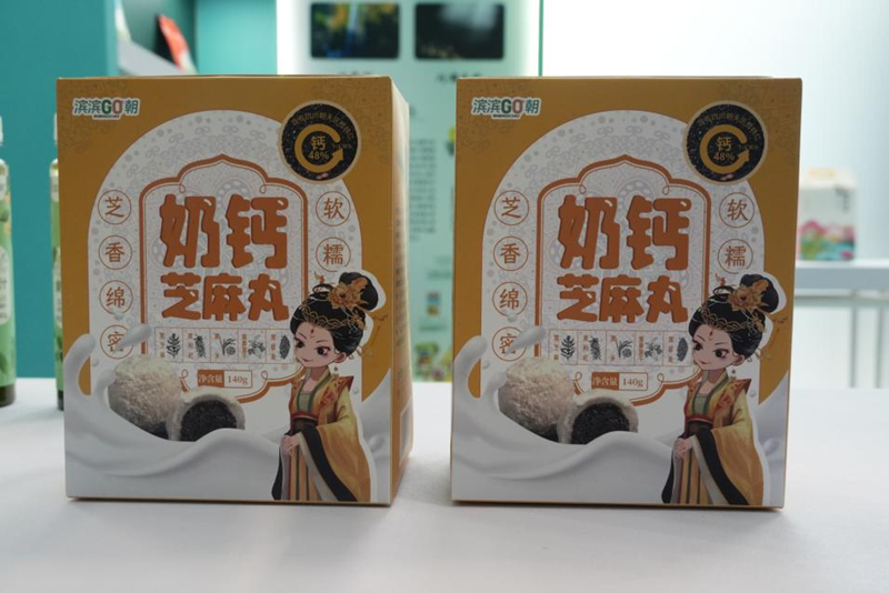 朝天区展位上的“滨滨go朝”奶钙芝麻丸。(活动主办方 供图)