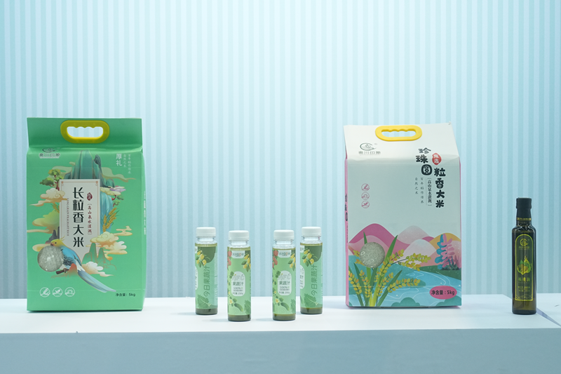 朝天区展位上的果蔬汁与大米。(活动主办方 供图)