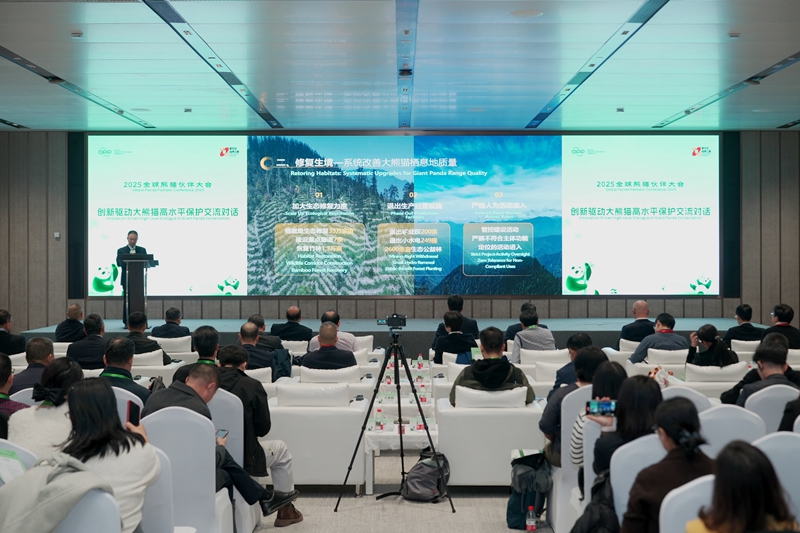 四川省林草局副局长王景弘、成都大熊猫繁育研究基地副主任侯蓉、中国大熊猫保护研究中心副主任李德生、中国科学院生态环境研究中心研究员徐卫华等专家,分别围绕大熊猫国家公园旗舰物种保护创新、资源调查新技术、圈养种群安全保障、保护成效量化评估等主题作发言。