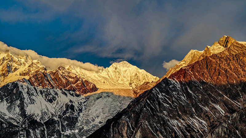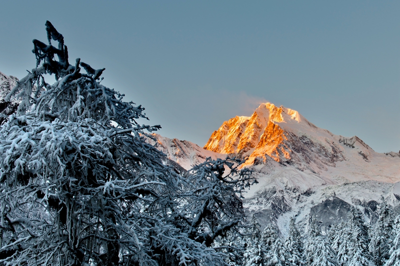 12月17日,在海螺沟景区内拍摄到的日照金山景观。(米克 摄)
