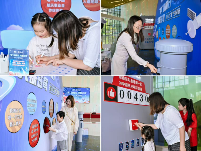 航天加油站专为航天爱好者“充电赋能”!这里有超多有趣的互动装置,打卡闯关、知识问答就能轻松解锁航天小知识,完成任务还能收获定制航天周边、康师傅天选好面等惊喜奖励,大小朋友都能收获满满。