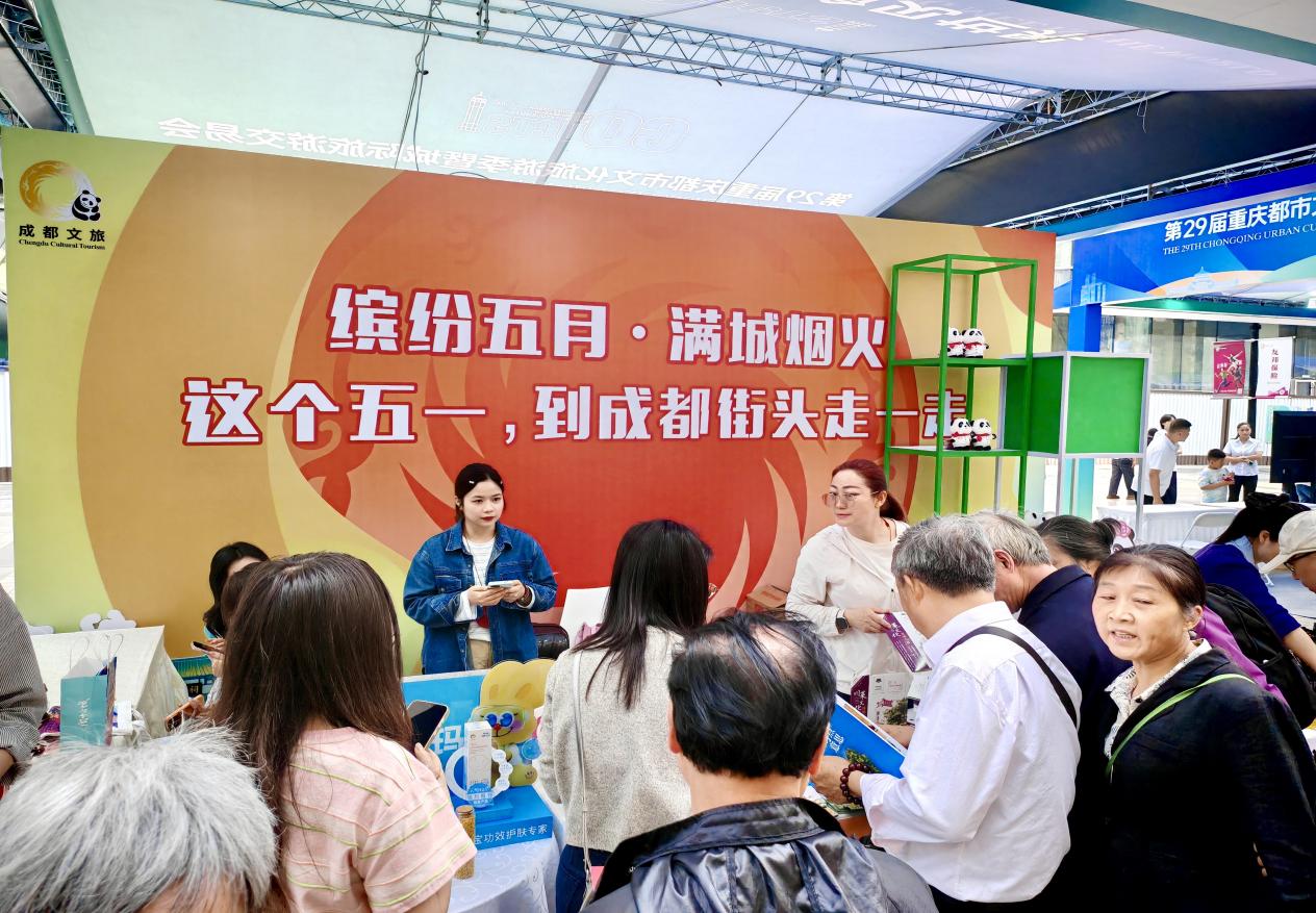 4月23日至26日,成都市文化广电旅游局联合成都都市圈德阳、眉山、资阳三市及部分区(市)县文旅部门、企业,共同亮相第29届重庆都市文化旅游节暨城际旅游交易会。成都展位以“缤纷五月・满城烟火——这个五月,到成都街头走一走”为主题,全方位呈现成都“五一”期间特色文旅场景、主题活动及便民惠民举措,向重庆市民发出诚挚出游邀约。本届展会总参观人数达160万人次,成都展位累计接待观众超3万人次。